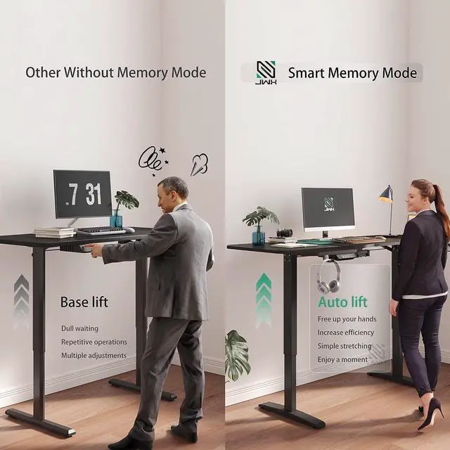 Electric Height Adjustable Lift System: JWX height adjustable standing desk comes with 2 memory buttons to customize your desired heights from 28.75 " to 46.43 ". The motor lift mechanism offers smoother height adjustments, at a speed of 1" /second with low noise (under 50 dB) while running. Provides a healthy & effective experience in your home and office.