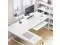 MultifunctionalThe monitor stand can easily raise the monitor to a suitable height, reducing the tension and pain in the back and neck. The keyboard tray is ideal for keyboard and mouse, which can free up more desktop space. The hook is convenient for you to put earphones or hang backpack. This white desk can help you maximize study and work efficiency.