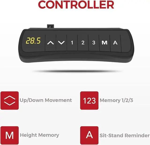 Programmable Control PanelThe intelligent controller allows you to customize and program the height with 3 different memory presets that make you easily and quickly switch between various positions
