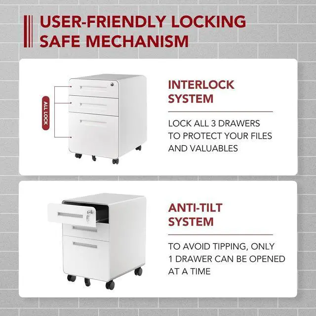 Round Corner File CabinetUnlike the right-angled frame, the rounded corner design can bring you a more comfortable experience and improve the safety of usage.