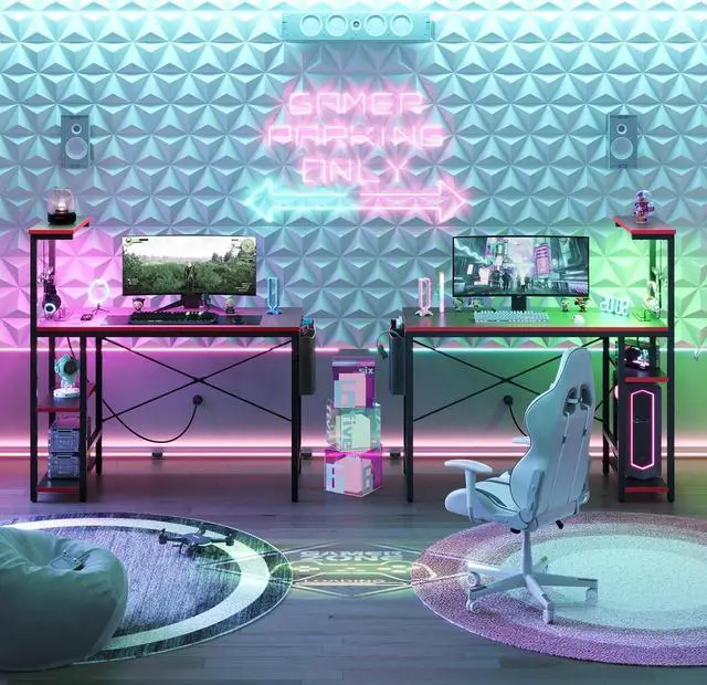 Unique & Immersive LED Desk: The gaming desk with LED lights which have 7 color selections and 22 dynamic modes, which can be easily controlled with buttons on the lights. The LED lights add a dynamic edge to your gaming setup, creating an atmosphere thats both exciting and engaging