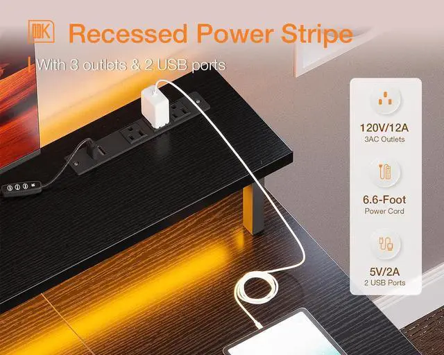 Gaming Enviroment: Our desk features a full monitor stand accommodate two monitors or laptops, built-in LED lighting create strong gaming ambiance.