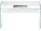 Modern writing desk conveys strength and elegance with clear tempered glass side panels