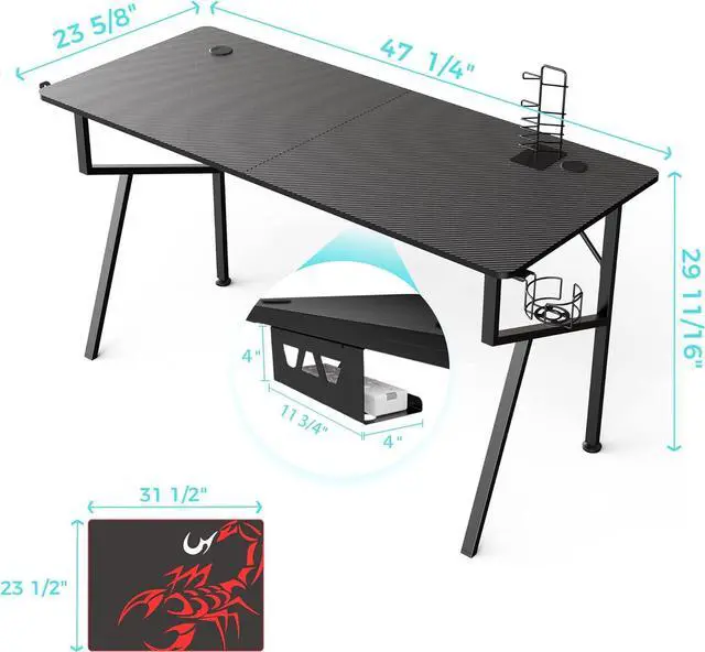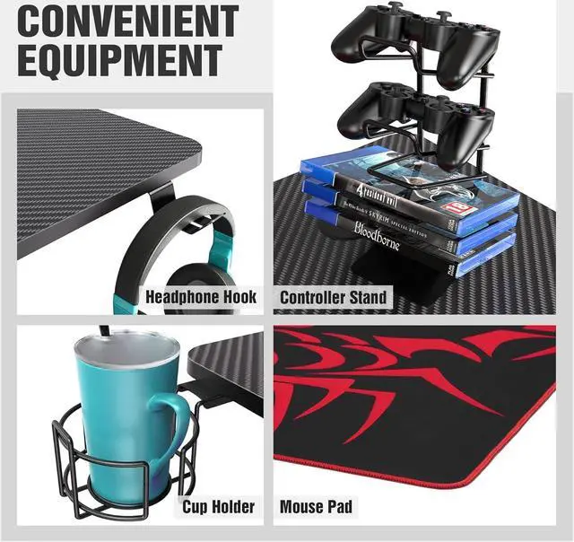 Free Accessories: 55 computer gaming desk comes with three convenient accessories, including cup holder, headphone hook and controller holder.