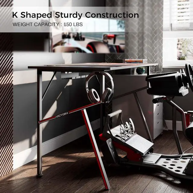 Sturdy & Stable: Equipped with two K-shaped metal legs and two iron support bars, Eureka computer gaming desk could hold up to 300 lbs and remain stable all the time.