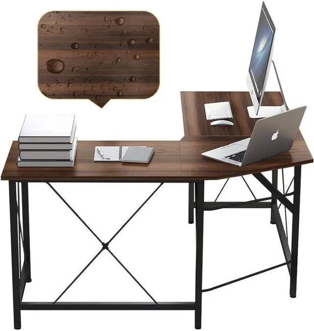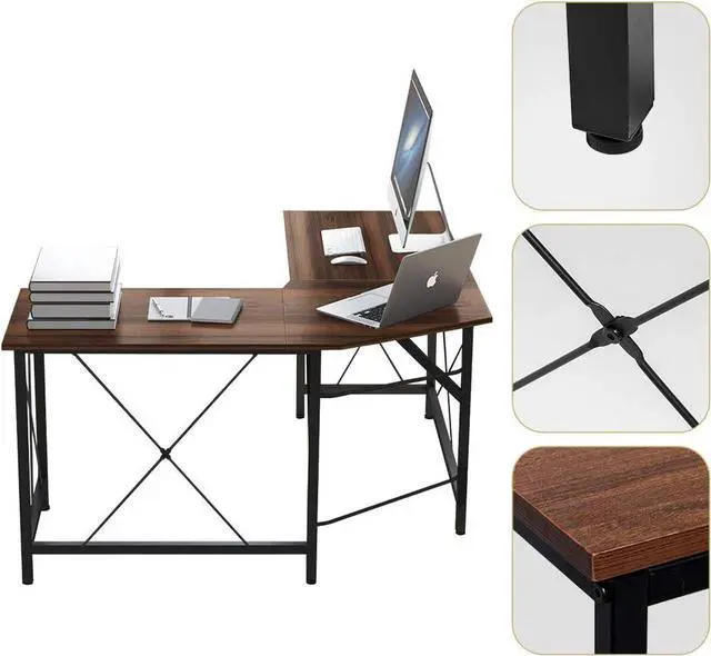 durable & sturdy construction: the l shaped desk is constructed by high quality p2 vintage wood-based panel & black metal frame. the metal frame offers large weight capacity. extra x style bracings ensures stability and durability. adjustable leg pads ensure the l desk keeps a sturdy construction even on uneven ground.