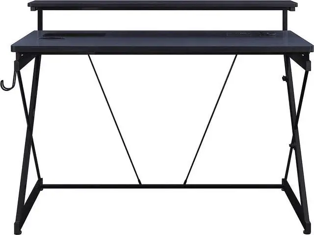 Durable steel frame in stealth black, paired with our matte fast tracking black carbon fiber finish top with raised, upper shelf