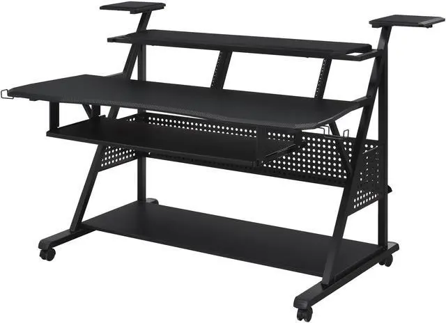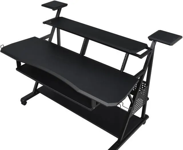 Versatile Music Desk: Rectangular design with built-in speaker shelves, a keyboard tray, and an earphone rack, perfect for music production or practice.