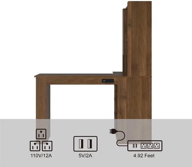 Convenient Charging StationThis computer desk features 2 USB ports, 3 power outlets & a 5 ft power cord to charge your laptop, tablet, printer, and other devices