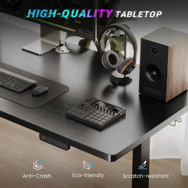 Built to handle up to 200 lbs, this gaming desk gives you the rock-solid stability every player needs. With one-touch height adjustment, you can switch between sitting and standing modes seamlessly, keeping your energy high during long sessions. The ultra-quiet motor operates under 45 dB, so your focus stays on the gamenot the noise. Integrated cable management keeps your setup clean and distraction-free, while the spacious desktop provides room for dual monitors, consoles, and peripherals. Engineered for esports, streaming, or casual play, this desk combines durability, performance, and style to upgrade your battle station.