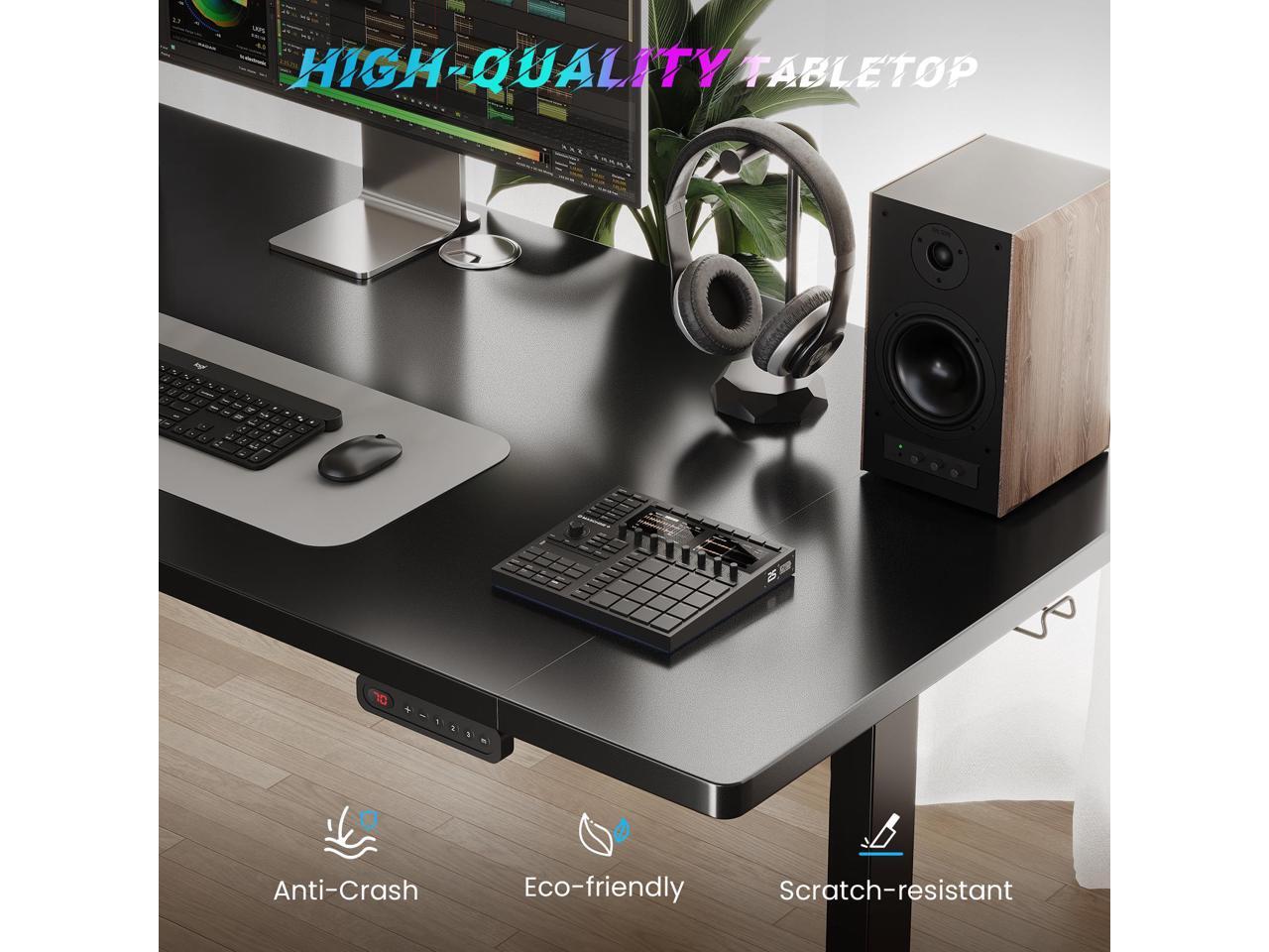 - Rock-Solid Stability: Reinforced steel frame and 19.8 cu.in. connection keep the desk steady at any height for work or gaming.