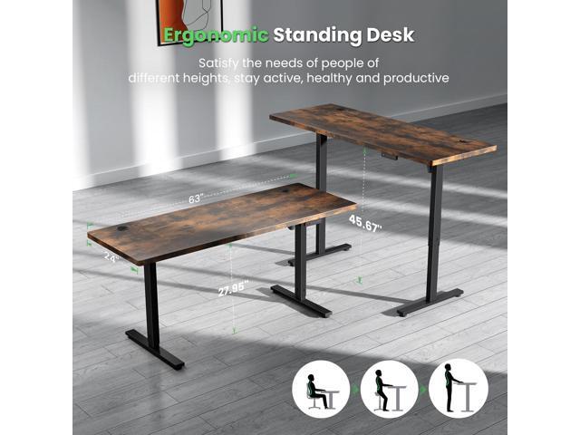 SIAGO Electric Standing Desk, Height Adjustable Gaming & Office Desk with Quiet Motor and Cable Management Maple 63'' x 24''