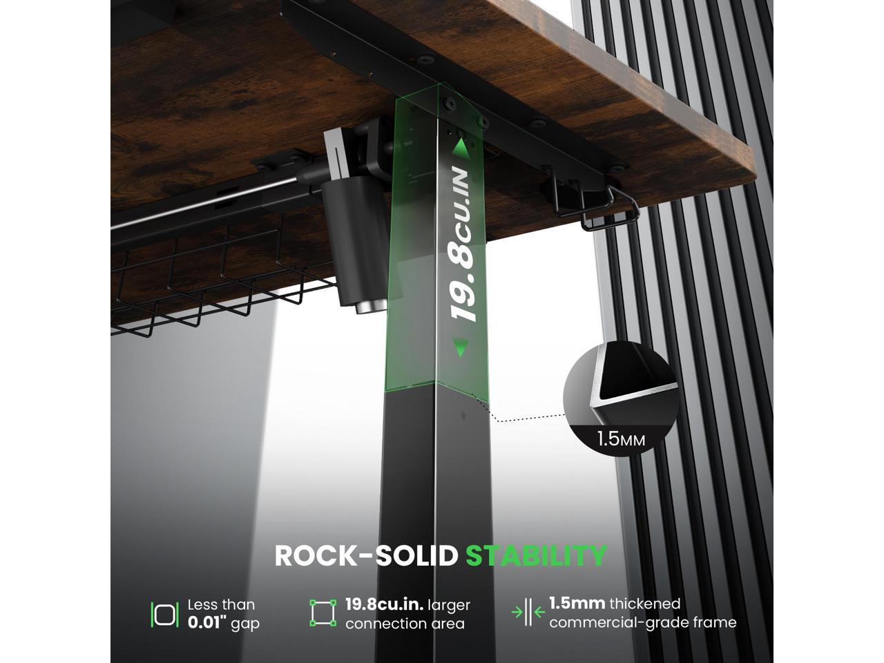 - Rock-Solid Stability: Reinforced steel frame and 19.8 cu.in. connection keep the desk steady at any height for work or gaming.