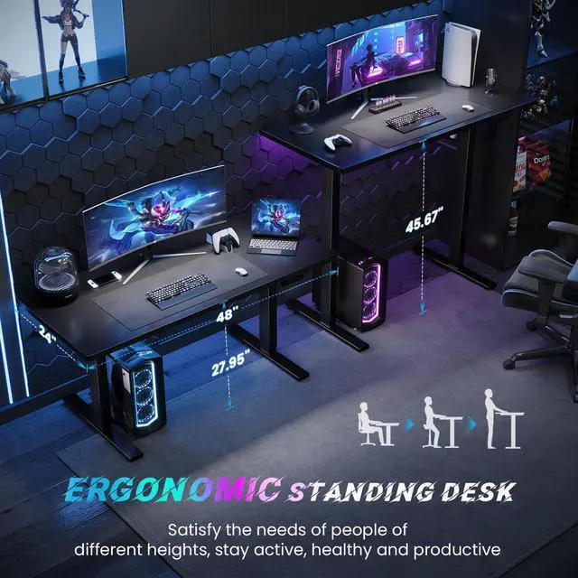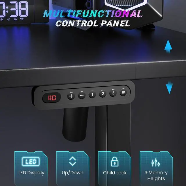 Built to handle up to 200 lbs, this gaming desk gives you the rock-solid stability every player needs. With one-touch height adjustment, you can switch between sitting and standing modes seamlessly, keeping your energy high during long sessions. The ultra-quiet motor operates under 45 dB, so your focus stays on the gamenot the noise. Integrated cable management keeps your setup clean and distraction-free, while the spacious desktop provides room for dual monitors, consoles, and peripherals. Engineered for esports, streaming, or casual play, this desk combines durability, performance, and style to upgrade your battle station.