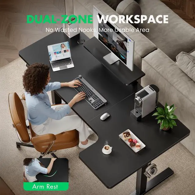 Dominate Your Setup with Precision Engineering Don't let a wobbly desk be the reason you miss a shot. This 63" L-Shaped Electric Standing Gaming Desk is built for enthusiasts who demand structural integrity and ergonomic flexibility. By utilizing a dual-beam structural design, we've eliminated the "desk-sway" common in corner setups, giving you a rock-solid foundation for your mouse, keyboard, and monitors.