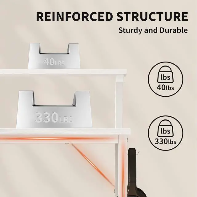 Practical Monitor Stand The l shape desk has a multi-function monitor stand, which is stable and durable, with a maximum load of 40 pounds, compatible with a variety of monitors, and the long monitor stand can protect your neck and spine health, and create additional storage space for your items to improve work efficiency.