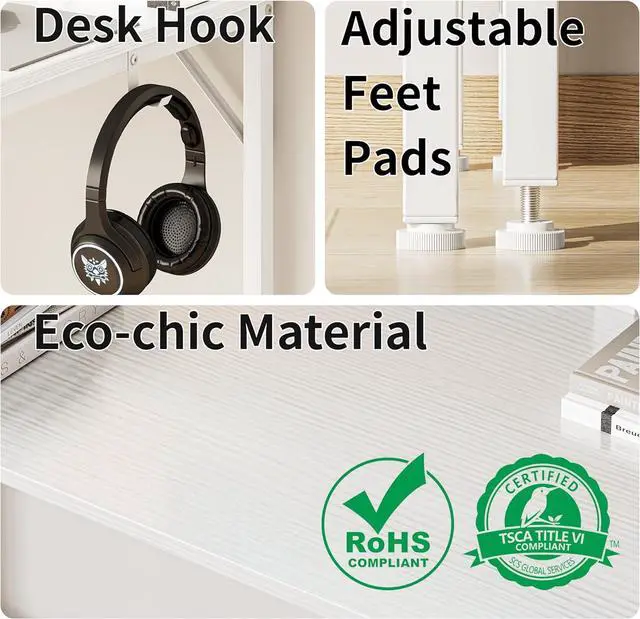 USB & Type-C Port The home office desk Equipped with 3 power sockets, 1 USB and 1 Type-C port, all plugs are safely embedded in the desktop, cleverly saving valuable desktop space. Whether it is a game, office computer or mobile device, it is easy to achieve fast charging and efficient office.