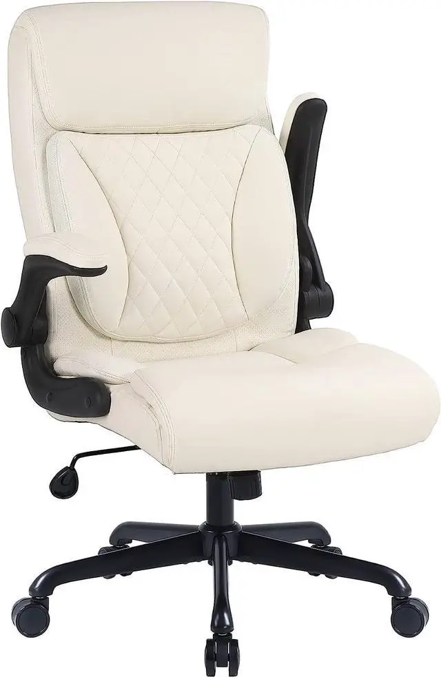 [Adjustable Features]: Pneumatic seat height adjustment, 20°tilt, 90° flip-up armrests, and 360° swivel. Able to rock back 110° to help you relax. With the foldaway arms, the executive chair can easily slide under a desk for space-saving. Adjustability options allow you to customize the perfect setting to fit your body comfortably.