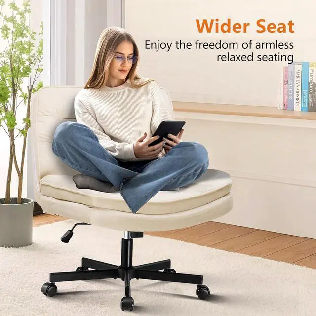 Criss Cross Chair with Wheels Armless Cross Legged Office Chair Wide Home Office Desk Chair Swivel Comfy Vanity Desk Chair Height Adjustable Mid Back Wide Seat Computer Task Chair