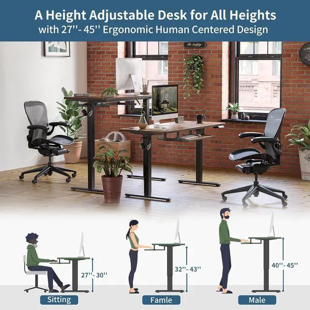 Electric Height Adjustable Lifting System: BANTI standing desks are equipped with a reliable motor that supports height adjustment from 27.3 ' ' - 45.5 ' ' and operates with low noise level (less than 50dB).