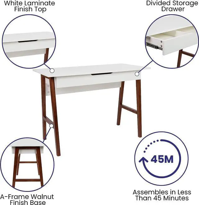 CHARMING DESIGN: Perfectly balanced mix of simple elegant - scratch resistant laminate top perched atop a walnut finished A-frame base