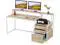 DESIGN]: Designed with the elevated monitor stand, this computer desk with storage enables you an ergonomic and comfortable sight-level height and sitting position while working; which effectively relieve eyestrain and the pain on your back and neck. A ergonomic desk gives you a comfortable working space!