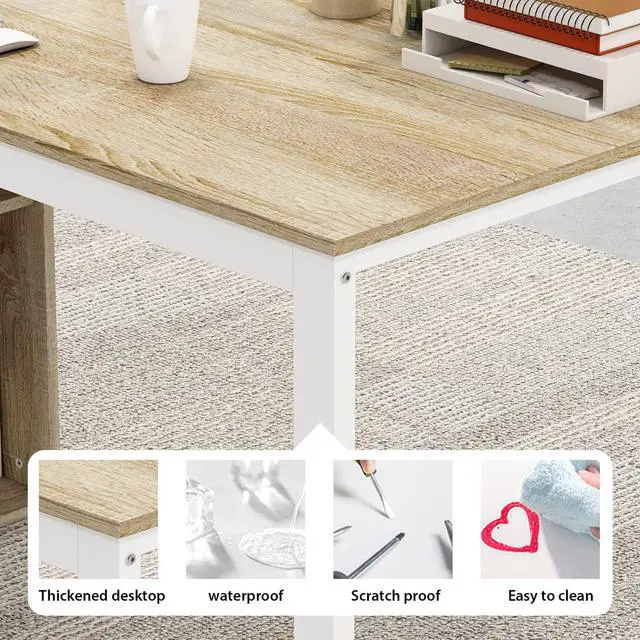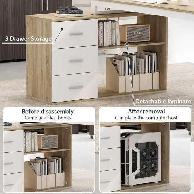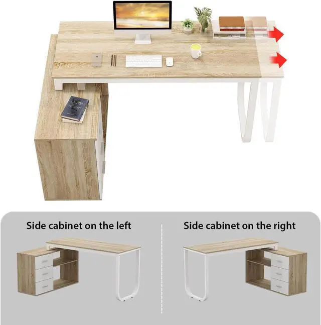 Large Storage SpaceThis home office desk features a drawer/shelf with a flip-down panel for your laptop or keyboard. This L-shaped office desk also includes two open shelf to hold books or files.
