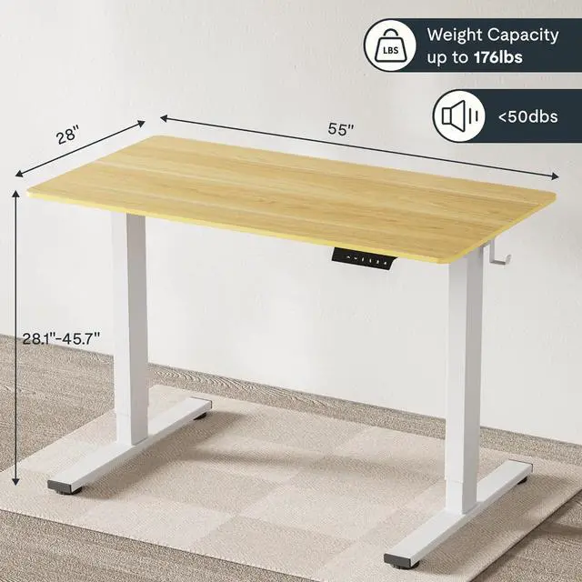 AMPLE WHOLE-PIECE DESKTOP: With its expansive 55 x 28 eco-friendly desktop, this standing desk provides generous space for dual monitors, a laptop, and more, empowering you to tackle any work task with confidence. Please allow for a slight 0 to 1-inch variance in desktop size due to manual measurement.