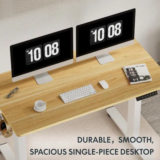 STANDING DESK HEIGHT ADJUSTABLE: Effortlessly transition between sitting and standing with the electric height adjustable system, offering smooth adjustments from 28.1 " to 45.7 ". The motor operates quietly, under 50 dbs, at a speed of 0.6 " per second. Each desk leg has undergone rigorous testing, enduring 20, 000 lift cycles.