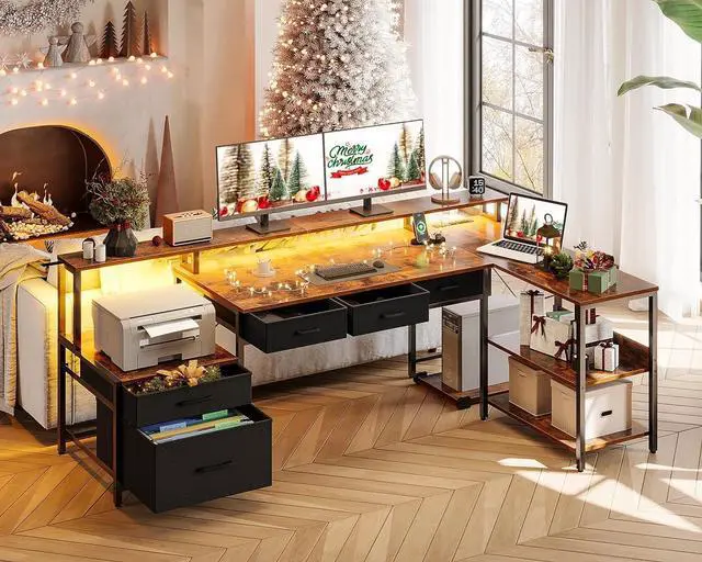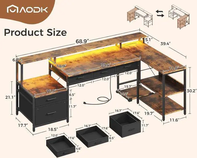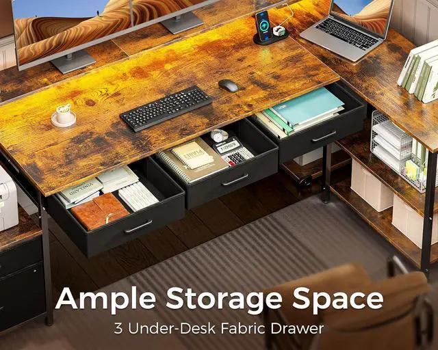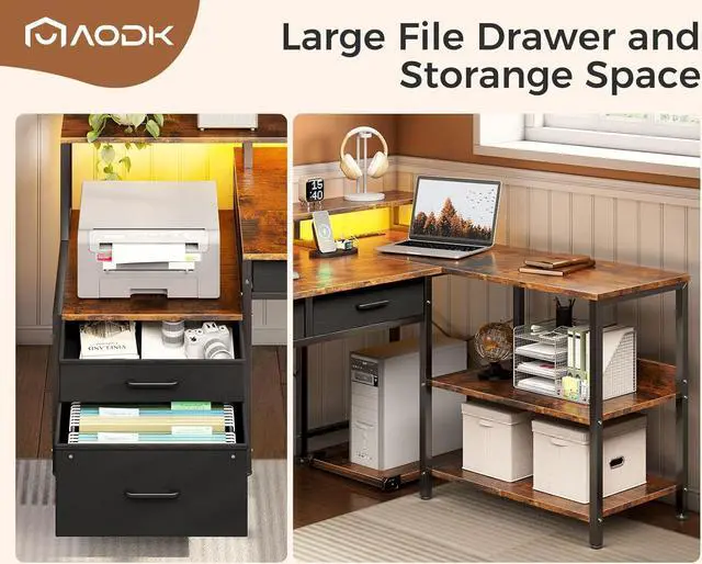 Ample Storage Space: The l shaped desk with storage offers ample storage solutions, including 2 file drawers, 3 under-desk drawers, a printer cabinet, a 2-tier under bookshelf and a computer tower stand. With these features, you can easily keep your items organized and within reach.