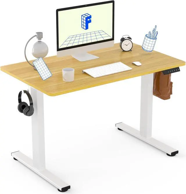 FLEXISPOT EN1 One-Piece Standing Desk 40 x 24 Inches Height Adjustable Desk Electric Sit Stand Up Desk Home Office Desks Computer Workstation (White Frame + Maple Desktop)