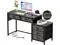 Unikito Computer Desk with 5 Drawers, Reversible Home Office Desk with Power Outlets, Sturdy Writing Desk with File Cabinet and Printer Stand, Vanity Desk with Storage for Small Space, Black Oak