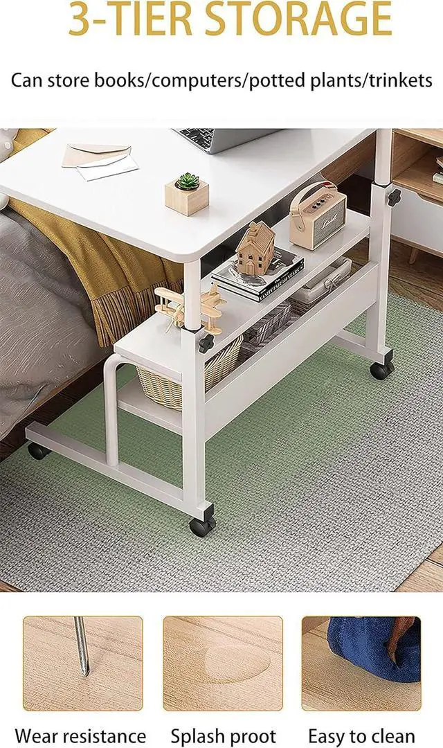 Adjustable Height&Easy Move: This kind of mobile laptop desk can be adjusted to your ideal position from 24" to 35.4 ". You can use the adjustable height mobile desk sitting or standing and the mobile computer desk which have 4 smooth wheels can also make desk move wherever you want
