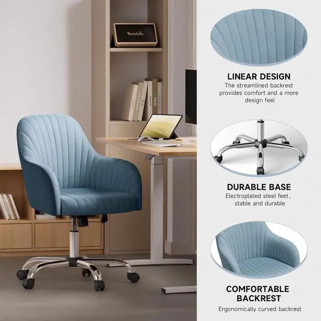 Comfy Office Chair: Adopted superior velvet material and filled with high-density native sponge and mid-back design, making this chair is comfortable for extended sitting. Also various colors available, which it goes perfect with your space decor.