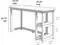 Dimensions: Wood desk stands 29.75 H x 19.75 D; Desk is 55.25 " in length; Desk can be assembled with the shelves on either side