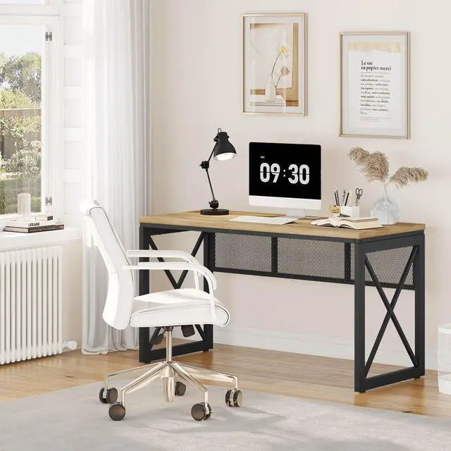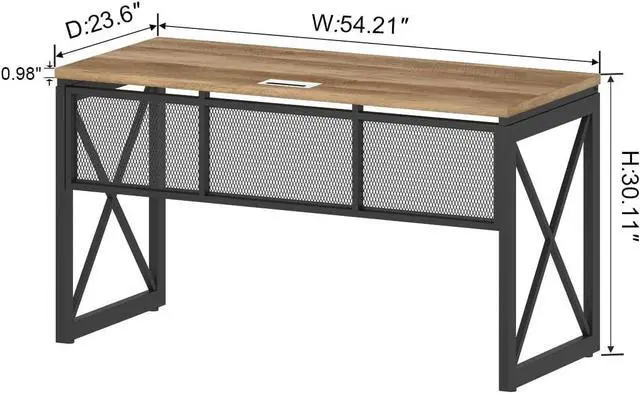 • Dimension and Long Lasting Material: 54.21"W x 23.62"D x 30.11"H. Desk top thickness: 0.98". Craft from metal and high grade MDF with vintage wood grain. This wood metal desk can be used as work desk for home office, writing table for study, modern gaming desk etc.