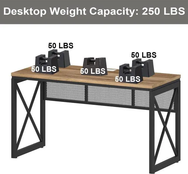 Not Wobbles at All: Heavy duty metal x-shaped legs and support mesh frame on the back, add an extra support tube under thick desktop makes this industrial computer desk super strong and sturdy. Besides 4 pcs adjustable feet will strengthen the stability and keep balance. Weight Capacity of desktop is 250 LBS.