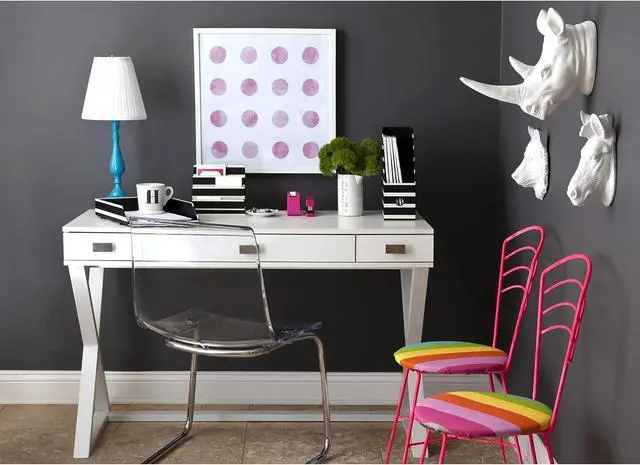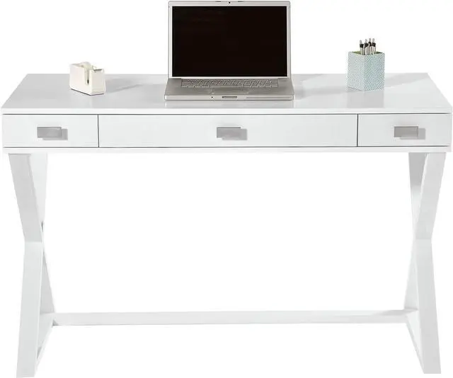 If you' re looking for a writing desk for a small space, look no further than the Realspace Keri 48" W Writing Desk. With flat satin hardware, the contemporary home office desk adds a stylish look to your workspace. You can spread out papers, your laptop and other essentials on the spacious worksurface. You' ll also be able to organize your workday materials and tools with this computer desk with storage, which features 3 desk drawers to hold your items.