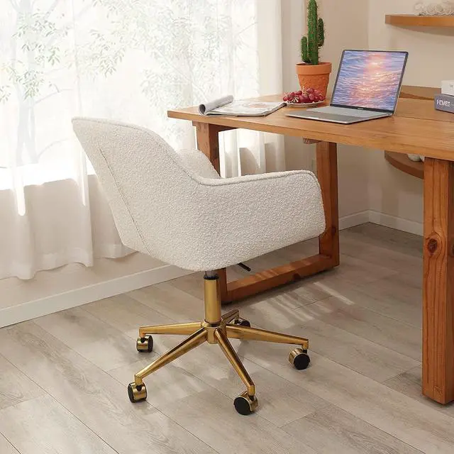 BOUCLE FABRIC: Honored as a modern desk chair that people could really recline on. Its self-explanatory that boucle fabric is famous for incredible durability. Besides that, another crucial characteristic of this superb fabric is offering maximum comfort due to its twisted wool fibers simultaneously. Whenever leaning on the chair with huge fatigue, a blast of warmth will spring out to embrace you like wearing favorite comfortable sweater to offer ultimate coziness.