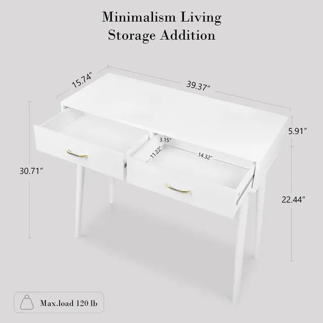 MULTI-USE: The minimalist design and bright white finish make this desk perfect for any space, like an home office, dorm, or living room. It doubles as a writing desk, makeup/vanity table, and office workstation, meeting all your needs and expectations