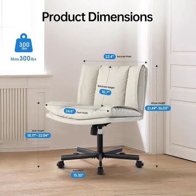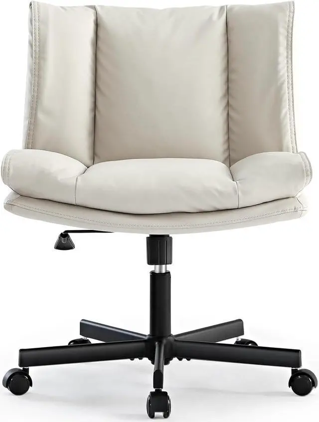 Upgraded PU Leather Desk Chair: The cushion is filled with high-density sponge along with padded backrest, making this wide armless crisscross chair perfect for sedentary users. It offers a cozy sitting experience even after long hours of use. The upgraded PU leather is easy clean and comfortable, and the elegant design complements any style of space. The PU leather desk chair is perfect for your home office, living room, bedroom or any other decor theme, also can be makeup vanity chair for girls and women