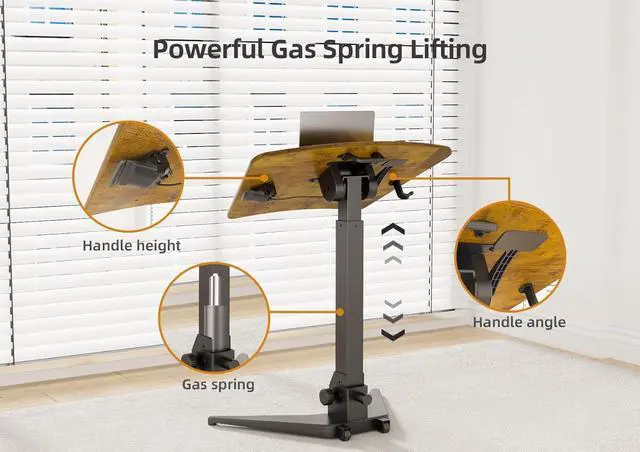 Pneumatic Height Adjustable: Adjust the height of the mobile standing desk with just one button! Using pneumatic adjustment technology, you can smoothly and quickly switch between sitting and standing positions. The adjustable height range is 29.9 " to 44.9 "