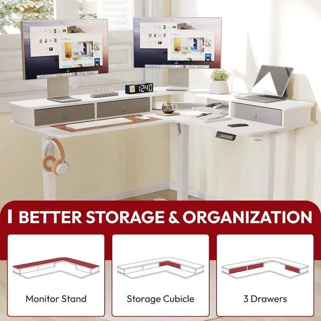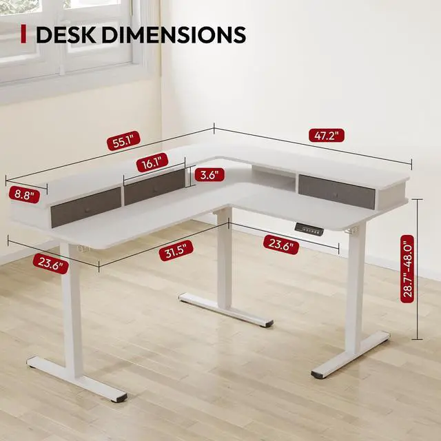 VERSATILE L-SHAPED DESK: Ideal for gamers optimizing their setup or professionals seeking an efficient workstation, this L-shaped desk offers multifunctionality to meet diverse needs beyond up & down.