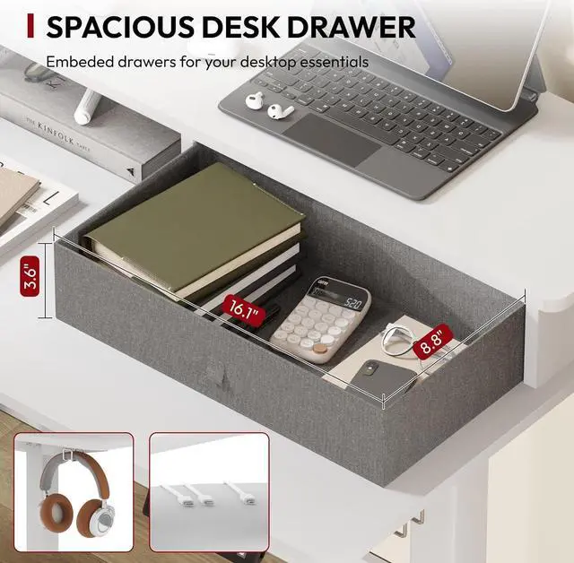 AMPLE STORAGE SPACE: Boasting 3 large drawers, side headphone hooks, and a USB charging port for a organised desktop, providing additional storage and convenience for enhanced organization.