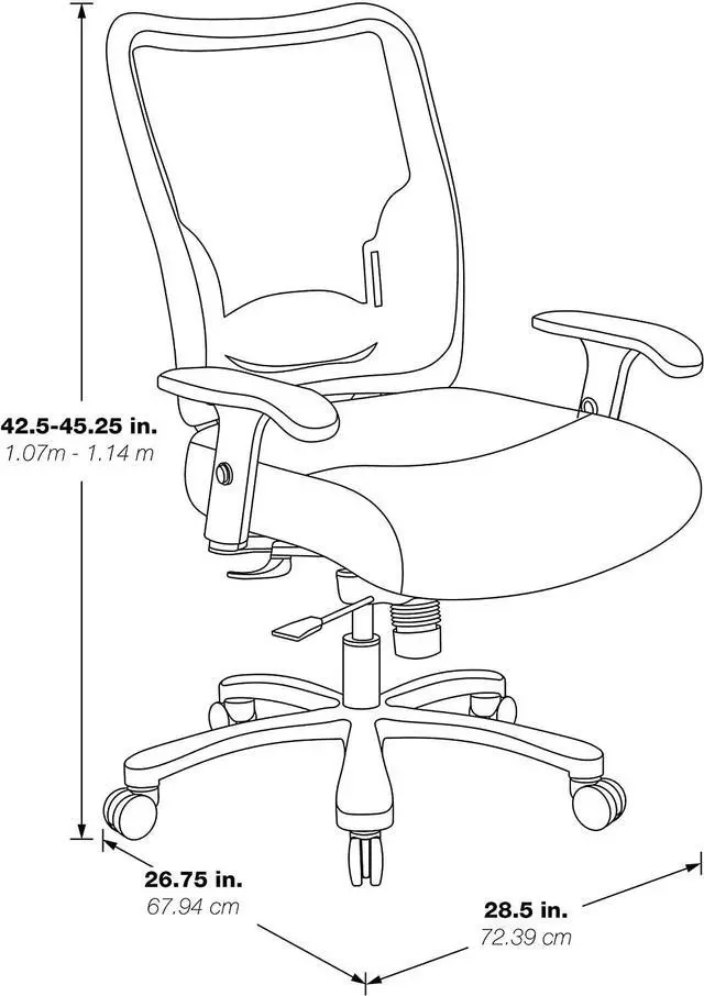 Overall size: 28.75 W x 27 D x 42.5 - 45.5 H;