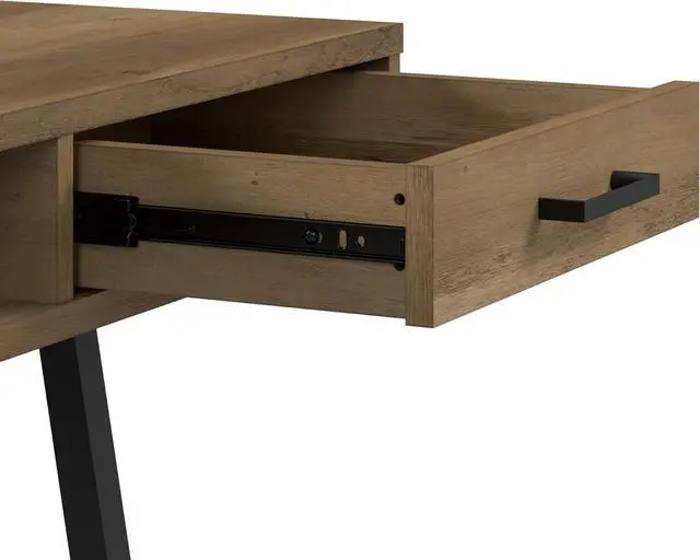 UNIQUE STYLE: Elevating industrial design, the Steele Collection features distinctive powder-coated splayed metal legs and rustic finishes, seamlessly blending functionality with aesthetic appeal. Writing desk with storage boasts industrial styling that adds a unique touch to a variety of interiors.