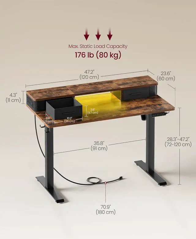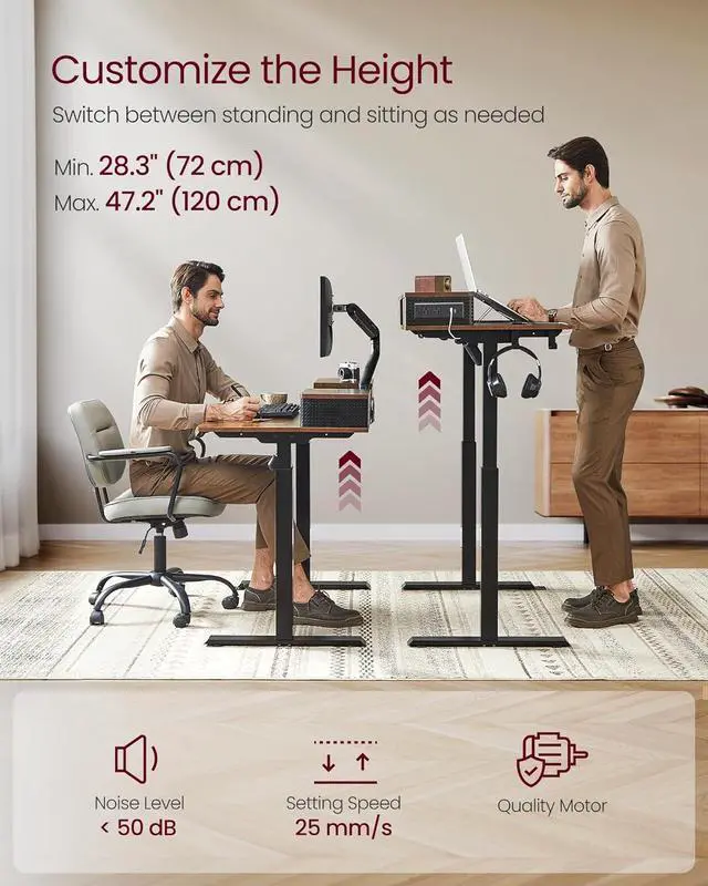 [Adjustable Height and Memory Function] The height of this standing desk can be adjusted between 28.3 " - 47.2 ", allowing you to find the perfect position for your work. With its memory function, you can easily save 3 favorite heights