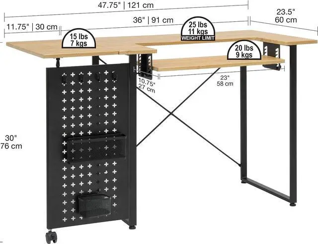 Adjustable Height Sewing Platform: 23" W x 10.75 " D, Weight Limit- 20 lbs.