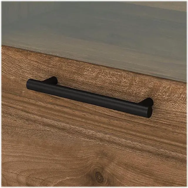 Transitional styling includes an elegant finish with contemporary metal hardware