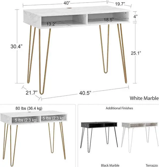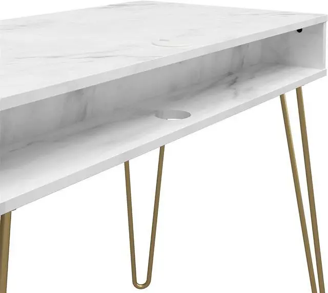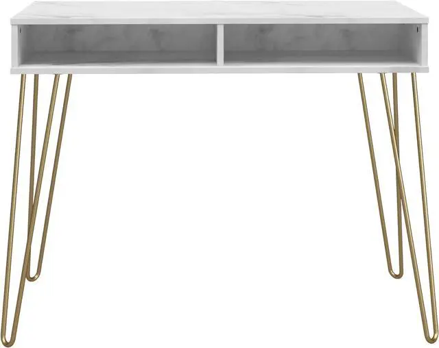 UNIVERSAL DESIGN WITH A RETRO TOUCH: Novogratz Athena Desk is a blend of Mid-Century Modern and Refined Retro styles; Its powder-coated metal hairpin legs and faux marble finish make it a stylish addition to any room